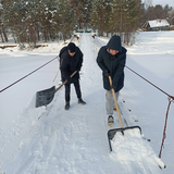 Ребята из центра помощи детям сегодня занимались общественно-полезной деятельностью. Они очищали подвесной мост от снега , чтобы обезопасить передвижение детей и взрослых по нему.
